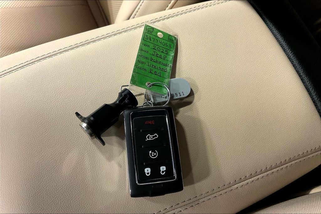 Velvet Red Pearlcoat 2025 Jeep Grand Cherokee Limited RWD 8-Speed Automatic 3.6L V6 24V VVT New Feature, Grand Cherokee Limited, 4D Sport Utility, 3.6L V6 24V VVT, 8-Speed Automatic, RWD, Velvet Red Pearlcoat, Wicker Beige/Black Artificial Leather, 2nd-Row Manual Window Shades, 4-Wheel Disc Brakes, 6 Speakers, ABS brakes, Active Noise Control System, Air Conditioning, Alloy wheels, AM/FM radio: SiriusXM with 360L, Anti-whiplash front head restraints, Audio memory, Auto High-beam Headlights, Auto-Dimming Exterior Driver Mirror, Automatic temperature control, Black Appearance Package, Brake assist, Bumpers: body-color, Capri Leatherette Seats, Capri Leatherette w/Axis II Seats, Compass, Delay-off headlights, Driver door bin, Driver vanity mirror, Dual front impact airbags, Dual front side impact airbags, Dual-Pane Panoramic Sunroof, Electronic Stability Control, Emergency communication system, Four wheel independent suspension, Front anti-roll bar, Front Bucket Seats, Front Center Armrest w/Storage, Front dual zone A/C, Front fog lights, Front License Plate Bracket, Front reading lights, Front/Rear Doors & Liftgate w/Passive Entry, Fully automatic headlights, Garage door transmitter, Gloss Black Exterior Accents, Heated door mirrors, Heated front seats, Heated rear seats, Heated steering wheel, Illuminated entry, Integrated Off-Road Camera, Intersection Collision Assist System, Knee airbag, Low tire pressure warning, Luxury Tech Group II, Memory seat, Memory Steering Column, Model Year Tracking, Navigation System, Normal Duty Suspension, Occupant sensing airbag, Outside temperature display, Overhead airbag, Overhead console, Panic alarm, ParkSense Front/Rear Park Assist w/Stop, ParkView Rear Back-Up Camera, Passenger door bin, Passenger vanity mirror, Power door mirrors, Power driver seat, Power Liftgate, Power passenger seat, Power steering, Power Tilt/Telescope Steering Column, Power windows, Quick Order Package 22E, Radio data system, Radio: Uconnect 5 Nav w/10.1 Display, Rain Sensitive Windshield Wipers, Rear anti-roll bar, Rear Back-Up Camera Washer, Rear reading lights, Rear window defroster, Rear window wiper, Rearview Autodim Digital Display Mirror, Remote keyless entry, Security system, Speed control, Speed-Sensitive Wipers, Split folding rear seat, Spoiler, Steering wheel mounted audio controls, Surround View Camera System, Tachometer, Telescoping steering wheel, Tilt steering wheel, Traction control, Trailer Hitch Zoom, Trip computer, Turn signal indicator mirrors, Variably intermittent wipers, Ventilated Front Seats, Voltmeter, Wheels: 20 x 8.5 Gloss Black Painted Aluminum, Wireless Charging Pad.