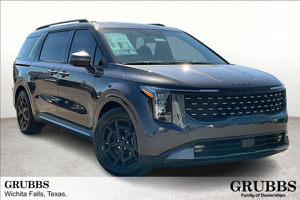 2026 Kia Carnival SX 4D Passenger Van SX Panthera Metal FWD 8-Speed Automatic V6 Carnival SX, 4D Passenger Van, V6, 8-Speed Automatic, FWD, Panthera Metal, Off-Black Artificial Leather, 3rd row seats: split-bench, 8 Speakers, ABS brakes, Air Conditioning, All Weather Floor Mats (8-Passenger), Alloy wheels, AM/FM radio: SiriusXM, Apple CarPlay & Android Auto, Artificial Leather Seat Trim, Automatic temperature control, Bumpers: body-color, Compass, Dark Edition Front Grille Trim, Dark Edition Mirror Caps, Driver door bin, Electronic Stability Control, Exterior Parking Camera Rear, Front Bucket Seats, Front Center Armrest, Front dual zone A/C, Heated & Ventilated Front Bucket Seats, Heated door mirrors, Heated front seats, Memory seat, Navigation System, Passenger vanity mirror, Power 2nd-Row Moonroof, Power door mirrors, Power driver seat, Power Liftgate, Power moonroof, Power passenger seat, Power steering, Power windows, Radio: AM/FM/HD Audio System, Rear air conditioning, Rear window defroster, Remote keyless entry, Speed-sensing steering, Split folding rear seat, Spoiler, Steering wheel mounted audio controls, SX Dark Edition Package, Tilt steering wheel, Turn signal indicator mirrors, Ventilated front seats, Wheels: 7.5J x 19 Alloy Dark Edition.
