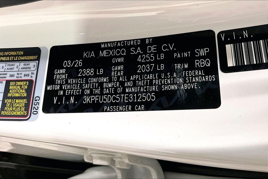Recent Arrival! 2026 Kia K4 GT-Line Turbo 4D Hatchback GT-Line Turbo Snow White Pearl FWD 8-Speed Automatic 1.6L I4 DGI 16V K4 GT-Line Turbo, 4D Hatchback, 1.6L I4 DGI 16V, 8-Speed Automatic, FWD, Black Leather, 8 Speakers, ABS brakes, Air Conditioning, Alloy wheels, AM/FM radio: SiriusXM, Automatic temperature control, Bumpers: body-color, Driver door bin, Dual front impact airbags, Dual front side impact airbags, Front anti-roll bar, Front Bucket Seats, Front Center Armrest, Front dual zone A/C, Front Heated Bucket Seats, Front reading lights, harman/kardon® Speakers, Heated door mirrors, Heated front seats, Illuminated entry, Navigation System, Occupant sensing airbag, Outside temperature display, Panic alarm, Passenger vanity mirror, Power door mirrors, Power driver seat, Power moonroof, Power steering, Power windows, Radio data system, Radio: 12.3 Touchscreen Audio Display with Navigation, Rear seat center armrest, Rear window defroster, Remote keyless entry, Security system, Speed control, Split folding rear seat, Spoiler, Steering wheel mounted audio controls, SynTex Artificial Leather Seat Trim, Turn signal indicator mirrors. Price includes: $1000 - KFA Dealer Choice Program: $1000 discount and 5.25% APR for 36 months. $30.08 per $1000 financed. Available to well qualified buyers who finance through Kia Finance America. 506. Exp. 05/04/2026 Price includes $225 in dealer added accessories.