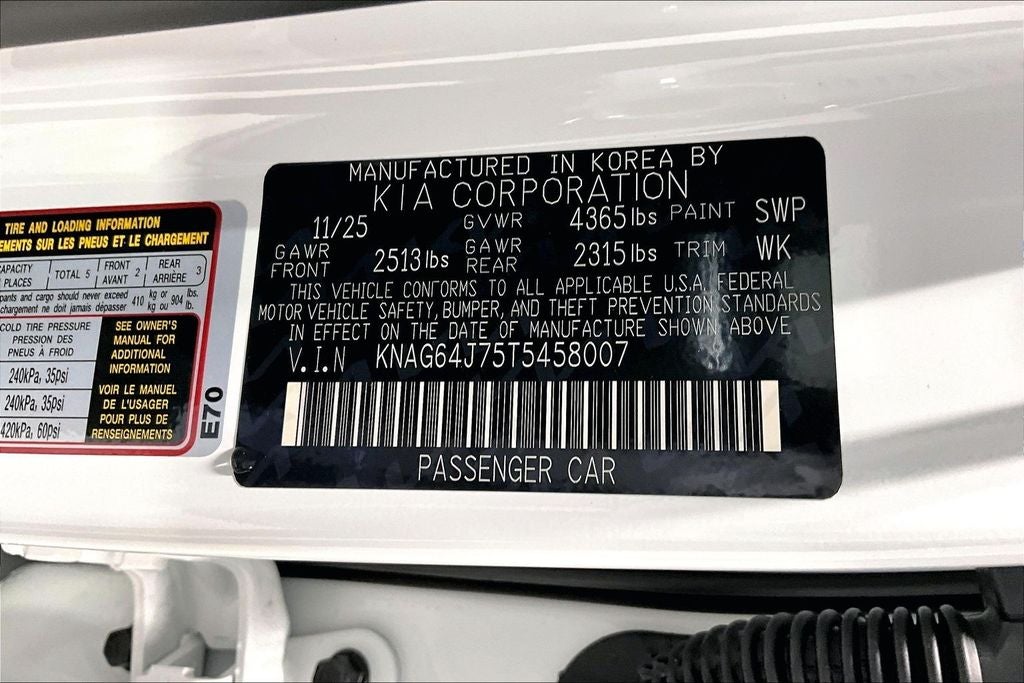 New Price! Recent Arrival! 2026 Kia K5 GT-Line 4D Sedan GT-Line Snow White Pearl 8-Speed Automatic I4 K5 GT-Line, 4D Sedan, I4, 8-Speed Automatic, Snow White Pearl, Red Leatherette, 6 Speakers, Active Sound Design, Air Conditioning, AM/FM radio: SiriusXM, Auto High-beam Headlights, Automatic temperature control, Bose Premium Audio, Brake assist, Delay-off headlights, Dual front side impact airbags, Electronic Stability Control, Emergency communication system: Kia Connect (includes 1 year free trial), Front anti-roll bar, Front Center Armrest, Front dual zone A/C, Front fog lights, GT-Line Premium Package, GT-Line Red Interior Package, Heated Front Bucket Seats, Heated front seats, Knee airbag, LED Interior Lighting, Low tire pressure warning, Navigation System, Occupant sensing airbag, Panic alarm, Panoramic Sunroof, Power driver seat, Power steering, Power windows, Radio data system, Radio: AM/FM Audio System, Rear anti-roll bar, Rear window defroster, Remote keyless entry, Security system, Speed control, Speed-sensing steering, Steering wheel mounted audio controls, SynTex Seat Trim, Wheels: 18 x 7.5J Unique Gloss Black Alloy. Price includes: $1000 - KFA Dealer Choice Program: $1000 discount and 5.25% APR for 36 months. $30.08 per $1000 financed. Available to well qualified buyers who finance through Kia Finance America. 506. Exp. 03/02/2026
