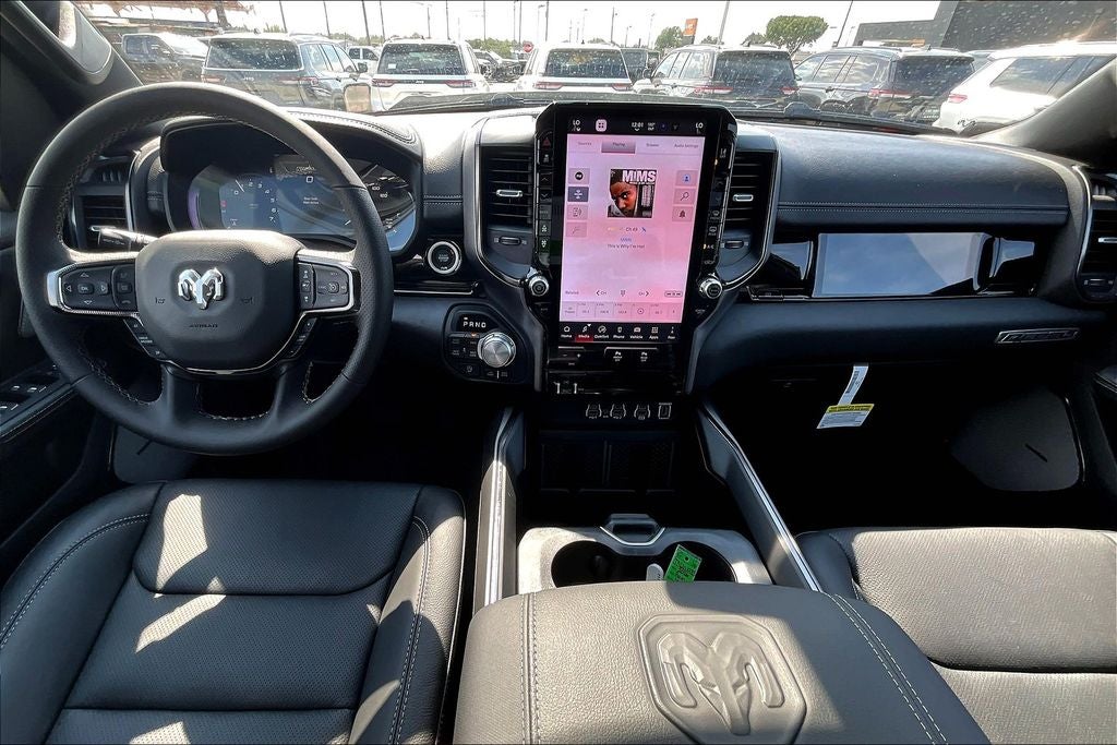 2026 Ram 1500 Rebel 4D Crew Cab Rebel Forged Blue Metallic 4WD 8-Speed Automatic 3.0L I6 1500 Rebel, 4D Crew Cab, 3.0L I6, 8-Speed Automatic, 4WD, Forged Blue Metallic, Black Leather, 10 Speakers, 115V Auxiliary Rear Power Outlet, 14.4 Touchscreen Display, 2-Door Passive Entry, Front Door Locks, 4G LTE Wi-Fi Hot Spot, ABS brakes, Accent Color Door Handles, Accent Color Premium Power Mirrors, Accent Color Tailgate Handle, Active Noise Control System, Air Conditioning, AM/FM radio: SiriusXM with 360L, Apple CarPlay, Apple CarPlay/Android Auto, Auto Power-Folding Mirrors, Auto-Dimming Exterior Driver Mirror, Auto-dimming Rear-View mirror, Automatic temperature control, Bed Utility Group, Black Painted Exterior Mirrors Caps, Brake assist, Bucket Seats, Cloth/Vinyl Bucket Seats, Compass, Connected Travel & Traffic Services, Connectivity - US/Canada, Convex Wide-Angle Exterior Mirror Insert, Disassociated Touchscreen Display, Dome Dual LED Reading Lamp, Driver Seat Memory, Dual front impact airbags, Dual front side impact airbags, Dual Wireless Charging Pad, Dual-Pane Panoramic Sunroof, Electronic Stability Control, Exterior 115V AC Outlet, Exterior Mirrors Approach Lamps, Exterior Mirrors Courtesy Lamps, Exterior Mirrors w/Heating Element, Exterior Mirrors w/Memory, Exterior Mirrors w/Supplemental Signals, Front Bucket Seats, Front dual zone A/C, Front Passenger Interactive Display, Front wheel independent suspension, Global Telematics Box Module (TBM), Google Android Auto, GPS Antenna Input, GPS Navigation, harman/kardon 19 Speaker Premium Sound, HD Radio, Heated Front Seats, Heated front seats, Heated Second Row Seats, Integrated Center Stack Radio, Integrated Voice Command w/Bluetooth®, Media Hub w/2 Charge Only USBs, MOPAR 4 Adjustable Cargo Tie-Down Hooks, MOPAR Spray In Bedliner, Navigation System, Off-Road Information Pages, ParkView Rear Back-Up Camera, Power 2-Way Driver Lumbar Adjust, Power 2-Way Passenger Lumbar Adjust, Power Adjust 8-Way Front Passenger Seat, Power Adjustable Pedals w/Memory, Power Tailgate, Proximity Approach/Departure Lamps, Quick Order Package 21W Rebel, Radio data system, Radio: Uconnect 5 Nav w/14.4 Display, Radio/Driver Seat/Mirrors/Pedals Memory, Rain Sensitive Windshield Wipers, Rear Window Defroster, Rebel Level 2 Equipment Group, Security Alarm, SiriusXM Radio Service, SiriusXM w/360L, Smartphone As A Key Capable, USB Host Flip.