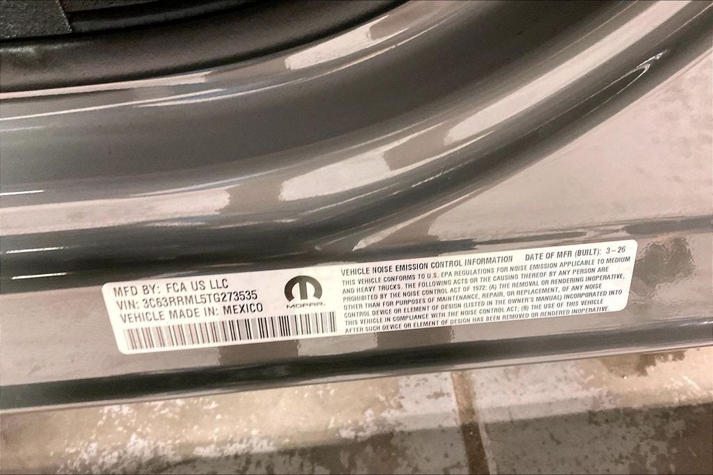 Recent Arrival! 2026 Ram 3500 Laramie 4D Mega Cab Laramie Ceramic Gray Clearcoat 4WD 8-Speed Automatic 6.7L I6 3500 Laramie, 4D Mega Cab, 6.7L I6, 8-Speed Automatic, 4WD, Ceramic Gray Clearcoat, Black Leather, #1 Seat Foam Cushion, 115V Auxiliary Rear Power Outlet, 14.4 Touchscreen Display, 17 Speaker Harman/Kardon Premium Sound, 2 Way Rear Headrest Seat, 4 Way Front Headrests, 4G LTE Wi-Fi Hot Spot, Active Lane Management System, Adaptive Steering System, Alexa Built-in, Apple CarPlay, Auto Adjust in Reverse Exterior Mirrors, Auto Dim Exterior Mirror, Auto High Beam Headlamp Control, Auto Power-Folding Mirrors, Auto-Dimming Exterior Passenger Mirror, Black Exterior Truck Badging, Black Wheel Center Hub, Body Color Grille Surround, Bucket Seats, Center Stop Lamp with Cargo View Camera, Connected Travel and Traffic Services, Connectivity - US/Canada, Disassociated Touchscreen Display, Drowsy Driver Detection, Dual Wireless Charging Pad, Emergency Vehicle Alert System (EVAS), Exterior Mirrors Courtesy Lamps, Exterior Mirrors with Heating Element, Exterior Mirrors with Memory, Exterior Mirrors with Supplemental Signals, Foam Bottle Insert (door Trim Panel), For Details Visit DriveUconnect.com, For More Info, Call 800-643-2112, Forward and Reverse Utility Lights, Front Seat Back Map Pockets, Full Length Upgraded Floor Console, Global Telematics Box Module, Gloss Black Grille Billets/Accents, Google Android Auto, GPS Antenna Input, GPS Navigation, HD Radio, Heated Front Seats, Heated Steering Wheel, High Back Seats, Integrated Voice Command with Bluetooth®, Laramie Level 2 Plus Equipment Group, Leather Trimmed Bucket Seats, LED Bed Lighting, Mirror Running Lights, MOPAR Deployable Bed Step, MOPAR Spray in Bedliner, Navigation System, Night Edition, Off-Road Information Pages, Power 2-Way Driver Lumbar Adjust, Power 2-Way Passenger Lumbar Adjust, Power Adjust 8-Way Driver Seat, Power Adjust 8-Way Front Passenger Seat, Power Adjust Mirrors, Power Adjustable Pedals with Memory, Power Deployable Running Boards, Power driver seat, Power Heated Folding Telescopic Mirrors with Memory, Power steering, Power Sunroof, Power Telescoping Mirrors, Power windows, Power-Adjustable Convex Aux Mirrors, Quick Order Package 24H Laramie, Radio: Uconnect 5 Nav with 14.4 Display, Radio/Driver Seat/Mirrors/Pedals Memory, Rain Sensitive Windshield Wipers, Rear 60/40 Folding Seat, Remote Tailgate Release, Selectable Tire Fill Alert, SiriusXM Radio Service, SiriusXM with 360L, Sport Performance Hood, Traffic Sign Recognition, Trailer Tow Pages, Ventilated Front Seats. Price includes: $1000 - 2026 National Bonus Cash . Exp. 03/31/2026 $2000 - 2026 Southwest BC State of Texas Regional Bonus Cash . Exp. 03/31/2026