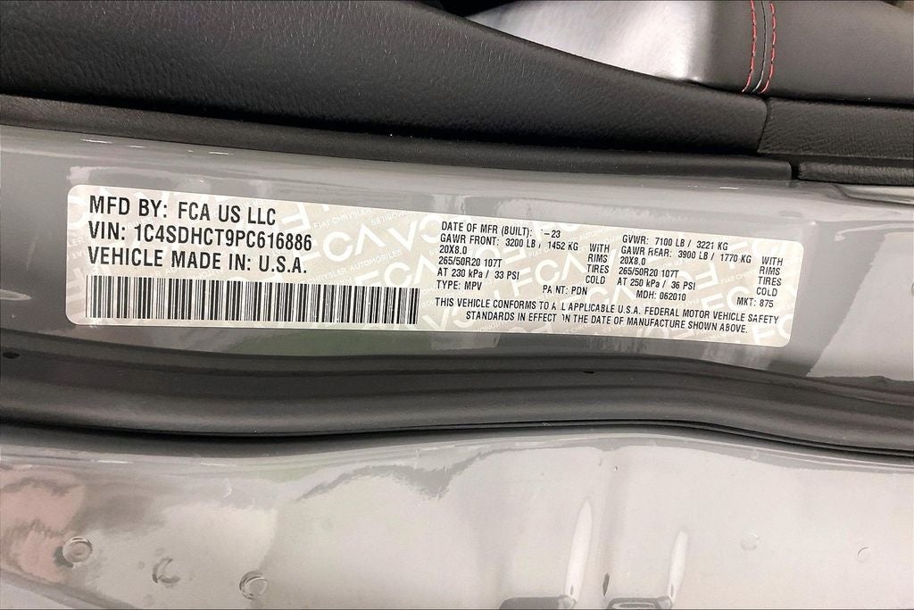 New Price! 2023 Dodge Durango R/T Plus R/T Plus Destroyer Gray Clearcoat 4D Sport Utility RWD HEMI 5.7L V8 Multi Displacement VVT 8-Speed Automatic 1 Owner, New Feature, Apple CarPlay / Android Auto, Backup camera, Blind Spot Monitoring, Bluetooth®, Heated seats, Leather seats, Navigation system, Remote Start, Sunroof / Moonroof, Third-row seating, Durango R/T Plus, 4D Sport Utility, HEMI 5.7L V8 Multi Displacement VVT, 8-Speed Automatic, RWD, Destroyer Gray Clearcoat, Red/Black/Ebony Leather, 115V Auxiliary Power Outlet, 2nd Row Fold/Tumble Captain Chairs, 2nd Row Mini Console w/Cupholders, 2nd Row Seat Mounted Inboard Armrests, 3.09 Rear Axle Ratio, 3rd Row Floor Mat & Mini Console, 3rd row seats: split-bench, 4-Wheel Disc Brakes, 6-Passenger Seating, 7 & 4 Pin Wiring Harness, 9 Speakers, ABS brakes, Adaptive Cruise Control w/Stop, Air Conditioning, Alloy wheels, AM/FM radio: SiriusXM w/360L, Apple CarPlay/Android Auto, Auto High-beam Headlights, Auto-Dimming Exterior Driver Mirror, Auto-dimming Rear-View mirror, Auto-leveling suspension, Automatic temperature control, Black Roof Rails, Brake assist, Bumpers: body-color, Class IV Receiver Hitch, Cloth Bucket Seats w/Shift Insert, Compass, Delay-off headlights, Driver door bin, Driver vanity mirror, Dual front impact airbags, Dual front side impact airbags, Dual Remote USB Port - Charge Only, Electronic Stability Control, Emergency communication system: SiriusXM Guardian, Exterior Mirrors w/Heating Element, Exterior Mirrors w/Memory, Exterior Mirrors w/Supplemental Signals, Floor Console w/Leather Armrest, Four wheel independent suspension, Front anti-roll bar, Front Bucket Seats, Front Center Armrest w/Storage, Front dual zone A/C, Front reading lights, Full Speed Forward Collision Warning Plus, Fully automatic headlights, Garage door transmitter, Gloss Black Exterior Mirrors, Heated door mirrors, Heated front seats, Heated Second Row Seats, Heated steering wheel, Illuminated entry, Integrated Roof Rail Crossbars, Knee airbag, Leather steering wheel, Leather Trimmed Bucket Seats, Leather Wrapped Door Panels, LED Auxiliary Low Beam & Turn Signal, Low tire pressure warning, Navigation system: TomTom, Occupant sensing airbag, Outside temperature display, Overhead airbag, Overhead console, Panic alarm, ParkView Rear Back-Up Camera, Passenger door bin, Passenger vanity mirror, Power 6x9 Multi-Function Foldaway Mirrors, Power 8-Way Driver Memory 8-Way Passenger Seats, Power door mirrors, Power driver seat, Power Driver/Passenger 4-Way Lumbar Adjust, Power Liftgate, Power steering, Power Sunroof, Power Tilt & Telescopic Steering Column, Power windows, Premium LED Fog Lamps, Quick Order Package 22T R/T Plus, Radio data system, Radio: Uconnect 5 Nav w/10.1 Display, Radio/Driver Seat/Mirrors Memory, Rain sensing wipers, Rear air conditioning, Rear anti-roll bar, Rear Load Leveling Suspension, Rear reading lights, Rear seat center armrest, Rear window defroster, Rear window wiper, Red Accent Stitching, Remote keyless entry, Security system, Speed control, Speed-sensing steering, Speed-Sensitive Wipers, Split folding rear seat, Spoiler, Sport steering wheel, Steering wheel mounted audio controls, Tachometer, Telescoping steering wheel, Tilt steering wheel, Traction control, Trailer Brake Control, Trip computer, Variably intermittent wipers, Ventilated Front Seats, Voltmeter, Wheels: 20 x 8.0 Fine Silver.