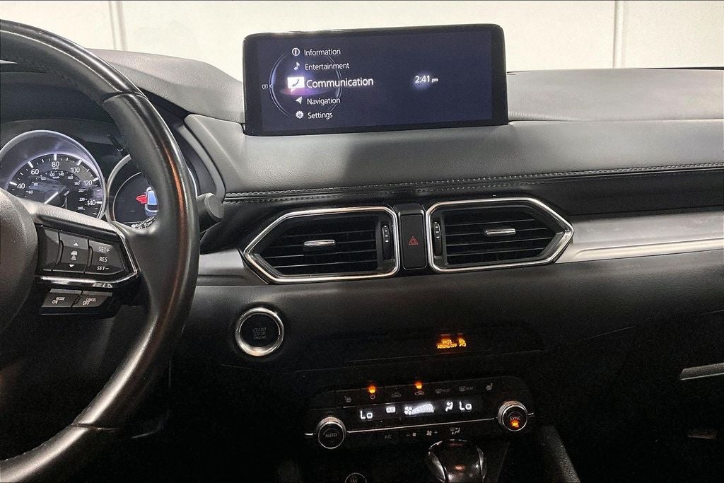 2023 Mazda CX-5 2.5 S Select Package 2.5 S Select Package Sonic Silver Metallic 4D Sport Utility AWD SKYACTIV® 2.5L 4-Cylinder DOHC 16V 6-Speed Automatic 1 Owner, New Feature, Apple CarPlay / Android Auto, Backup camera, Heated seats, Leather seats, CX-5 2.5 S Select Package, 4D Sport Utility, SKYACTIV® 2.5L 4-Cylinder DOHC 16V, 6-Speed Automatic, AWD, Sonic Silver Metallic, Black Artificial Leather, 4-Wheel Disc Brakes, 4.624 Axle Ratio, 6 Speakers, ABS brakes, Air Conditioning, Alloy wheels, AM/FM radio, AppLink/Apple CarPlay and Android Auto, Auto High-beam Headlights, Automatic temperature control, Brake assist, Bumpers: body-color, Delay-off headlights, Driver door bin, Driver vanity mirror, Dual front impact airbags, Dual front side impact airbags, E911 Automatic Emergency Notification, Electronic Stability Control, Emergency communication system: MAZDA CONNECT, Exterior Parking Camera Rear, Four wheel independent suspension, Front anti-roll bar, Front Bucket Seats, Front Center Armrest w/Storage, Front dual zone A/C, Front reading lights, Fully automatic headlights, Heated Front Bucket Seats, Heated front seats, Illuminated entry, Infotainment System Voice Command, Leather Shift Knob, Leatherette Seat Trim, Low tire pressure warning, Multifunction Commander Control, Occupant sensing airbag, Outside temperature display, Overhead airbag, Overhead console, Pandora, Panic alarm, Passenger door bin, Passenger vanity mirror, Power door mirrors, Power driver seat, Power steering, Power windows, Radio Broadcast Data System Program Information, Radio data system, Radio: AM/FM/HD Audio System, Rain sensing wipers, Rear anti-roll bar, Rear Bumper Guard, Rear reading lights, Rear seat center armrest, Rear window defroster, Rear window wiper, Remote keyless entry, SMS Text Msg Audio Delivery & Reply, Speed control, Speed-sensing steering, Split folding rear seat, Spoiler, Steering wheel mounted audio controls, Tachometer, Telescoping steering wheel, Tilt steering wheel, Traction control, Trip computer, Turn signal indicator mirrors, Variably intermittent wipers, Wheel Locks, Wheels: 17 x 7J Aluminum Alloy.