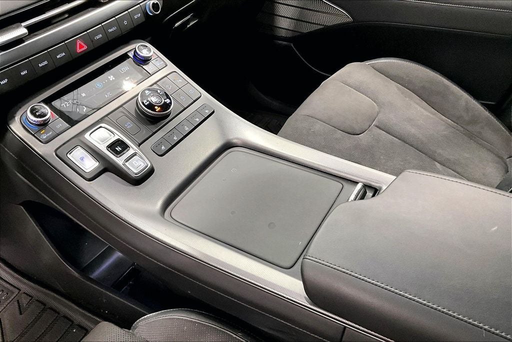 - Radio: AM/FM/MP3 Premium Audio System -inc: 630-Watts, Harman Kardon audio system w/12-speakers, Quantum Logic Surround, Clari-Fi, 12.3" color touchscreen display, onboard navigation w/traffic flow including incident data via HD Radio (HERE), Over-the-Air (OTA) map updates, SiriusXM, Android Auto and Apple CarPlay, USB, dynamic voice recognition, rear seat quiet mode, passenger talk (in-car intercom), Bluetooth® hands-free connectivity w/multiple device connection and Bluelink Connected Car System