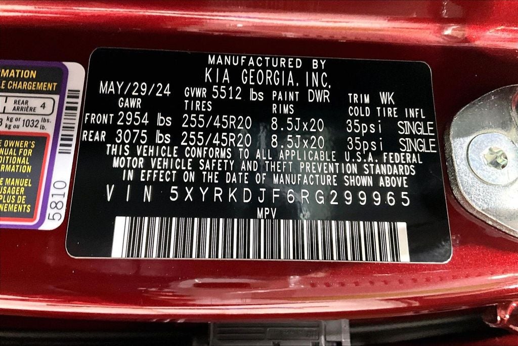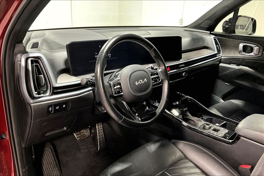 2024 Kia Sorento X-Line SX Prestige X-Line SX Prestige Dawning Red 4D Sport Utility AWD 2.5L I4 DGI Turbocharged DOHC 16V LEV3-SULEV30 281hp 8-Speed DCT Sorento X-Line SX Prestige, 4D Sport Utility, 2.5L I4 DGI Turbocharged DOHC 16V LEV3-SULEV30 281hp, 8-Speed DCT, AWD, Dawning Red, Black Leather, Air Conditioning, Alloy wheels, AM/FM radio: SiriusXM, Apple CarPlay & Android Auto, Auto-dimming Rear-View mirror, Automatic temperature control, Brake assist, Carpeted Floor Mats, Driver door bin, Driver vanity mirror, Dual front impact airbags, Electronic Stability Control, Emergency communication system: 911 Connect, Front anti-roll bar, Front dual zone A/C, Heated door mirrors, Illuminated entry, Navigation System, Overhead airbag, Power door mirrors, Power driver seat, Power Liftgate, Power moonroof, Power passenger seat, Power steering, Power windows, Radio data system, Rear window defroster, Remote keyless entry, Smart Key w/ Push Button and Remote Start, Split folding rear seat, Spoiler, Ventilated front seats.