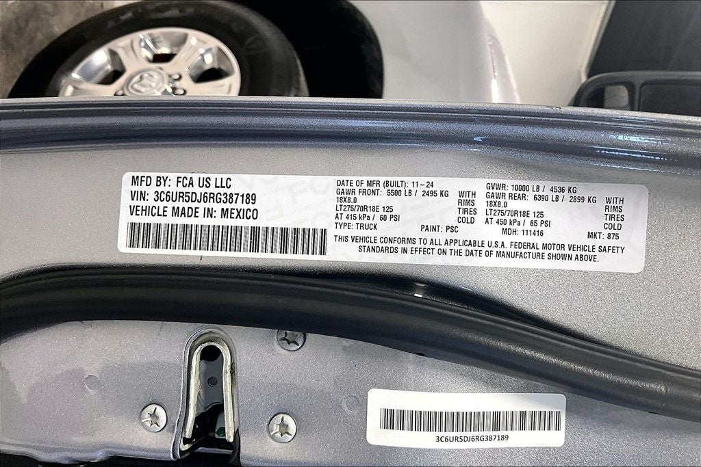 2024 Ram 2500 Big Horn Big Horn Billet Silver Metallic Clearcoat 4D Crew Cab 4WD 6.4L V8 8-Speed Automatic 1 Owner, New Feature, Apple CarPlay / Android Auto, Backup camera, Bluetooth®, 2500 Big Horn, 4D Crew Cab, 6.4L V8, 8-Speed Automatic, 4WD, Billet Silver Metallic Clearcoat, Diesel Gray/Black Cloth, 2 Way Rear Headrest Seat, 2nd Row In Floor Storage Bins, 3.73 Axle Ratio, 4 Way Front Headrests, 4-Wheel Disc Brakes, 40/20/40 Split Bench Seat, 4G LTE Wi-Fi Hot Spot, 6 Speakers, 8.4 Touchscreen Display, 9 Alpine Speakers w/Subwoofer, ABS brakes, Active Noise Control System, Air Conditioning, Anti-Spin Differential Rear Axle, Apple CarPlay, Auto Power-Folding Mirrors, Bed Utility Group, Big Horn IP Badge, Black Exterior Mirrors, Bluetooth® Handsfree Phone & Audio, Brake assist, Bumpers: chrome, Center Hub, Center Stack Storage Drawer, Chrome Flat Cab-Length Side Steps, Cloth 40/20/40 Bench Seat, Compass, Connectivity - US/Canada, Delay-off headlights, Driver door bin, Dual front impact airbags, Dual front side impact airbags, Dual Glove Boxes, Electronic Stability Control, Electronically Controlled Throttle, Emergency communication system: SiriusXM Guardian, Exterior Mirrors Courtesy Lamps, Exterior Mirrors w/Heating Element, Exterior Mirrors w/Supplemental Signals, Foam Bottle Insert (Door Trim Panel), Footwell Courtesy Lamp, For Details, Visit DriveUconnect.com, For More Info, Call 800-643-2112, Forward & Reverse Utility Lights, Front anti-roll bar, Front Armrest w/Cupholders, Front Center Armrest w/Storage, Front Center Seat Cushion Storage, Front Fog Lamps, Front License Plate Bracket, Front reading lights, Front Seat Back Map Pockets, Fully automatic headlights, Global Telematics Box Module (TBM), Glove Box Lamp, Google Android Auto, GPS Antenna Input, Heated door mirrors, Illuminated entry, Integrated Center Stack Radio, Integrated Voice Command w/Bluetooth®, Leather Wrapped Steering Wheel, LED Bed Lighting, Level 1 Equipment Group, Locking Lower Glove Box, Low tire pressure warning, Manual Adjust 4-Way Driver Seat, Manual Adjust 4-Way Front Passenger Seat, Manufacturer's Statement of Origin, Mirror Running Lights, MOPAR Deployable Bed Step, MOPAR Spray In Bedliner, Occupant sensing airbag, Outside temperature display, Overhead airbag, Overhead console, Panic alarm, ParkView Rear Back-Up Camera, Passenger door bin, Passenger vanity mirror, Power 2-Way Driver Lumbar Adjust, Power Adjust 8-Way Driver Seat, Power Adjust Mirrors, Power Adjustable Convex Aux Mirrors, Power door mirrors, Power Heated Fold Telescope Mirrors, Power steering, Power Telescoping Mirrors, Power windows, Premium Cloth 40/20/40 Bench Seat, Premium Cloth 40/20/40 Bench Seat (DISC), Protection Group, Quick Order Package 2GZ Big Horn, Radio data system, Radio: Uconnect 3 w/5 Display, Radio: Uconnect 5 W w/8.4 Display, Radio: Uconnect 5 W w/8.4 Display (A62), Rear 60/40 Folding Seat, Rear anti-roll bar, Rear Dome w/On/Off Switch Lamp, Rear Folding Seat, Rear seat center armrest, Rear step bumper, Remote keyless entry, Remote USB Port - Charge Only, Selectable Tire Fill Alert, SiriusXM Radio Service, SiriusXM Satellite Radio, Speed control, Steering Wheel Mounted Audio Controls, Storage Tray, Tachometer, Tilt steering wheel, Tip Start, Tow Hooks, Traction control, Trip computer, Turn signal indicator mirrors, Variably intermittent wipers, Voltmeter, Wheels: 18 x 8.0 Polished Aluminum.