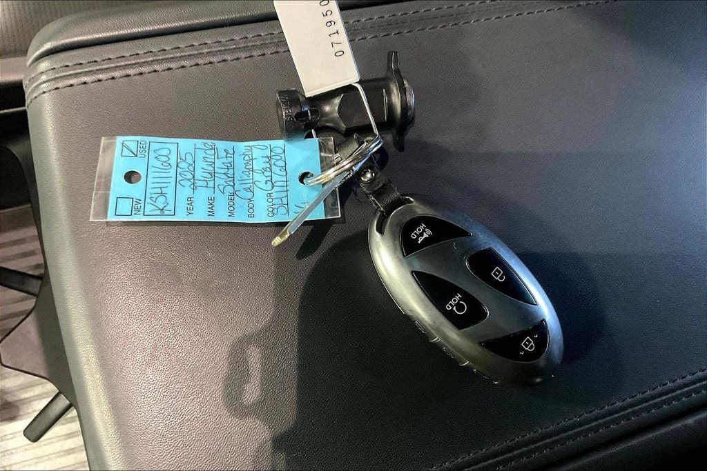 New Price! 2025 Hyundai Santa Fe Calligraphy Calligraphy Hampton Gray 4D Sport Utility AWD 2.5L I4 Shiftronic 1 Owner, New Feature, Apple CarPlay / Android Auto, Backup camera, Blind Spot Monitoring, Bluetooth®, Heated seats, Leather seats, Navigation system, Remote Start, Sunroof / Moonroof, Third-row seating, Santa Fe Calligraphy, 4D Sport Utility, 2.5L I4, Shiftronic, AWD, Hampton Gray, Black Leather, 12 Speakers, 3rd row seats: bench, 4-Wheel Disc Brakes, ABS brakes, Air Conditioning, Alloy wheels, AM/FM radio: SiriusXM, Apple CarPlay & Android Auto, Auto High-beam Headlights, Auto-dimming Rear-View mirror, Automatic temperature control, Brake assist, Bumpers: body-color, Cargo Net, Cargo Tray, Carpeted Floor Mats, Cross Rails, Delay-off headlights, Driver door bin, Driver vanity mirror, Dual front impact airbags, Dual front side impact airbags, Electronic Stability Control, Emergency communication system, Exterior Parking Camera Rear, First Aid Kit, Four wheel independent suspension, Front anti-roll bar, Front Bucket Seats, Front Center Armrest, Front dual zone A/C, Front reading lights, Fully automatic headlights, Garage door transmitter: HomeLink, Heads-Up Display, Heated & Ventilated Front Bucket Seats, Heated door mirrors, Heated front seats, Heated rear seats, Heated steering wheel, Illuminated entry, Knee airbag, Leather steering wheel, Low tire pressure warning, Memory seat, Navigation System, Occupant sensing airbag, Option Group 01, Outside temperature display, Overhead airbag, Overhead console, Panic alarm, Passenger door bin, Passenger vanity mirror, Power door mirrors, Power driver seat, Power Liftgate, Power moonroof, Power passenger seat, Power steering, Power windows, Premium Nappa Leather Seat Trim, Radio: AM/FM/HD Bose Premium Audio System, Rain sensing wipers, Rear anti-roll bar, Rear side impact airbag, Rear window defroster, Rear window wiper, Remote keyless entry, Security system, Speed control, Speed-sensing steering, Split folding rear seat, Spoiler, Steering wheel mounted audio controls, Tachometer, Telescoping steering wheel, Tilt steering wheel, Traction control, Transverse Panel, Trip computer, Turn signal indicator mirrors, Variably intermittent wipers, Ventilated front seats, Wheels: 21 x 8.5J Unique Dark Finish Alloy.