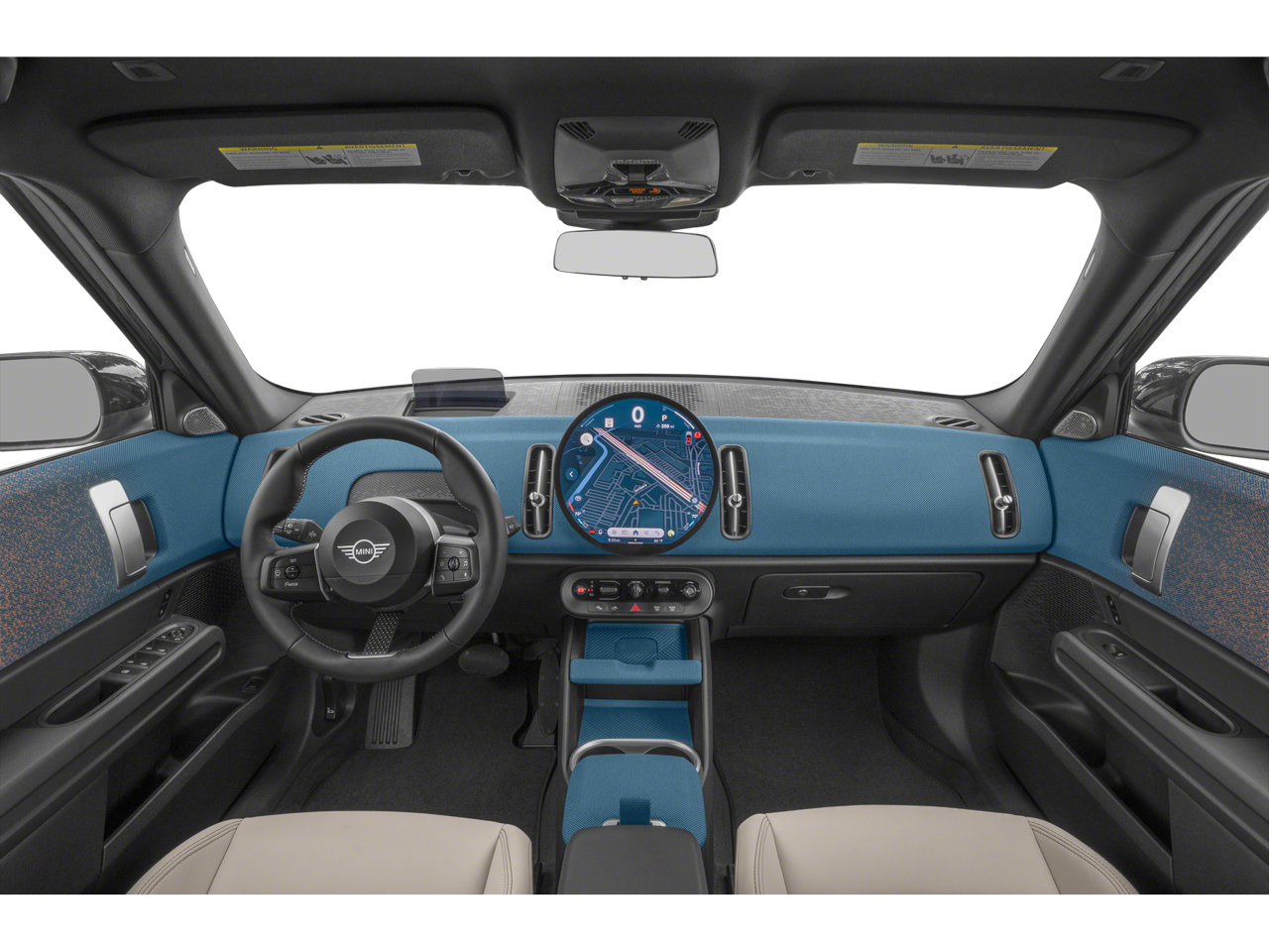 - Blue interior accents