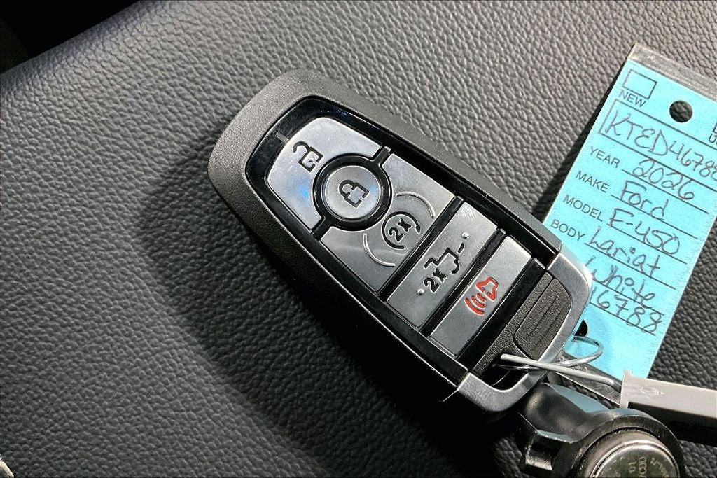 New Price! 2026 Ford F-450SD Lariat DRW Lariat Star White Metallic Tri-Coat DRW 4D Crew Cab 4WD 6.7L High Output Power Stroke V8 Diesel 10-Speed Automatic 1 Owner, New Feature, Apple CarPlay / Android Auto, Backup camera, Blind Spot Monitoring, Bluetooth®, Heated seats, Leather seats, Remote Start, CUSTOM COLOR MATCHED, LIFTED, CUSTOM WHEELS, F-450 SuperDuty Lariat DRW, 4D Crew Cab, 6.7L High Output Power Stroke V8 Diesel, 10-Speed Automatic, 4WD, Star White Metallic Tri-Coat, Black Onyx Premium Synthetic, 19.5 Forged Polished Aluminum Wheels, 360-Degree Camera, 360-Degree Camera Package, 4-Wheel Disc Brakes, ABS brakes, Air Conditioning, Alloy wheels, BLIS with Cross-Traffic Alert, Brake assist, Compass, Delay-off headlights, Dual front impact airbags, Dual front side impact airbags, Dual rear wheels, Electronic Stability Control, Emergency communication system: SYNC 4 911 Assist, Flow-Through Console, Ford Connectivity Package (1-Year Included), Front ActiveX Trimmed 40/Console/40 Seats, Front anti-roll bar, Front License Plate Bracket, Front reading lights, Fully automatic headlights, GVWR: 14,000 Lb Payload Package, Heated door mirrors, Illuminated entry, Internet access capable: 5G Modem - Ford Connectivity Package, LED Center High-Mounted Stop Lamp (CHMSL) Camera, Limited Slip with 4.30 Axle Ratio, Low tire pressure warning, Navigation system: Connected Navigation, Order Code 678A, Outside temperature display, Overhead airbag, Overhead console, Panic alarm, Passenger vanity mirror, Power door mirrors, Power steering, Power windows, Radio: B&O Sound System by Bang and Olufsen, Rear anti-roll bar, Rear Parking Sensors, Rear reading lights, Rear step bumper, Remote keyless entry, Security system, SiriusXM with 360L, Speed control, Split folding rear seat, Steering wheel mounted audio controls, SYNC 4 with Enhanced Voice Recognition, Tachometer, Telescoping steering wheel, Tilt steering wheel, Traction control, Trip computer, Turn signal indicator mirrors, Twin Panel Power Moonroof, Variably intermittent wipers.